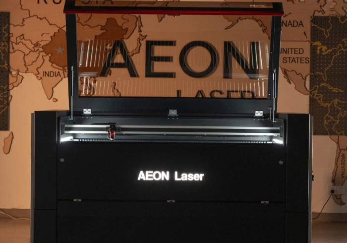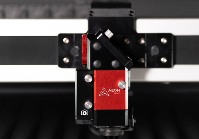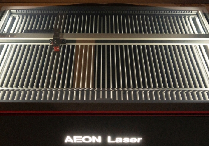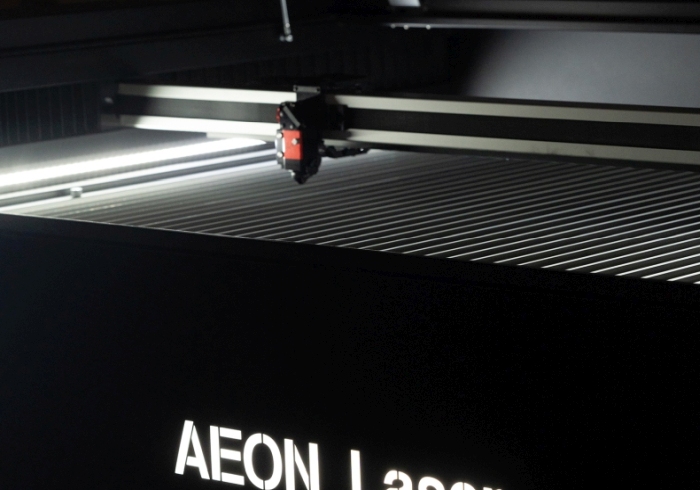 Logo Aeon Laser na przednim panelu drzwiczek dostępowych jest teraz podświetlane i pełni również funkcję diody stanu: świeci na biało, gdy urządzenie jest w trybie czuwania, na czerwono, gdy wystąpi błąd, a na zielono, gdy urządzenie działa, dodając zarówno formy, jak i funkcjonalności do i tak już zachwycającego projektu.